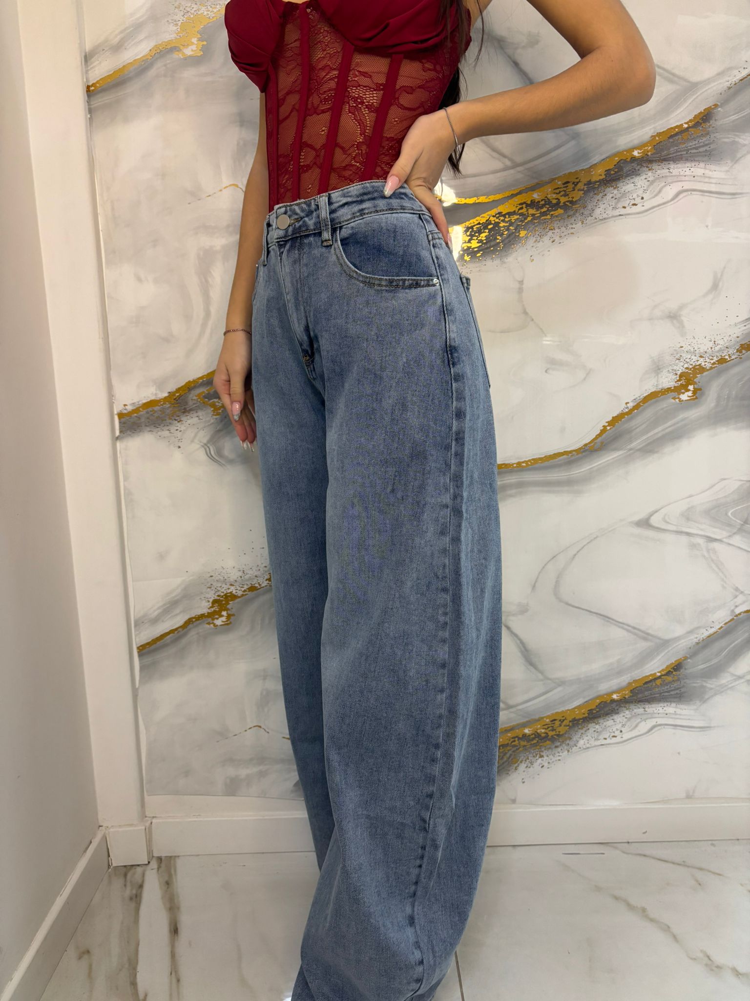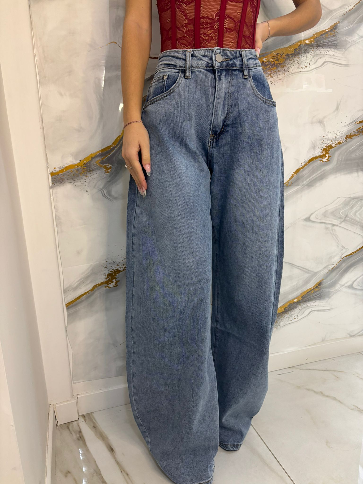Jeans ballon semplice, elasticizzato