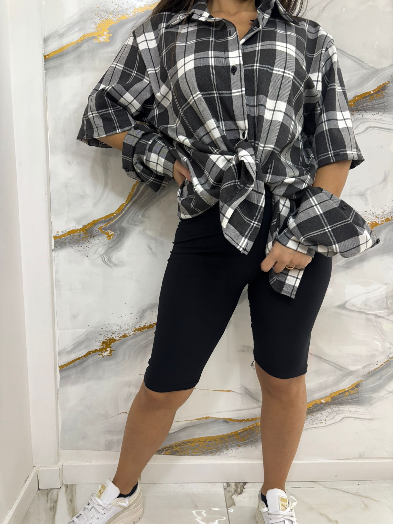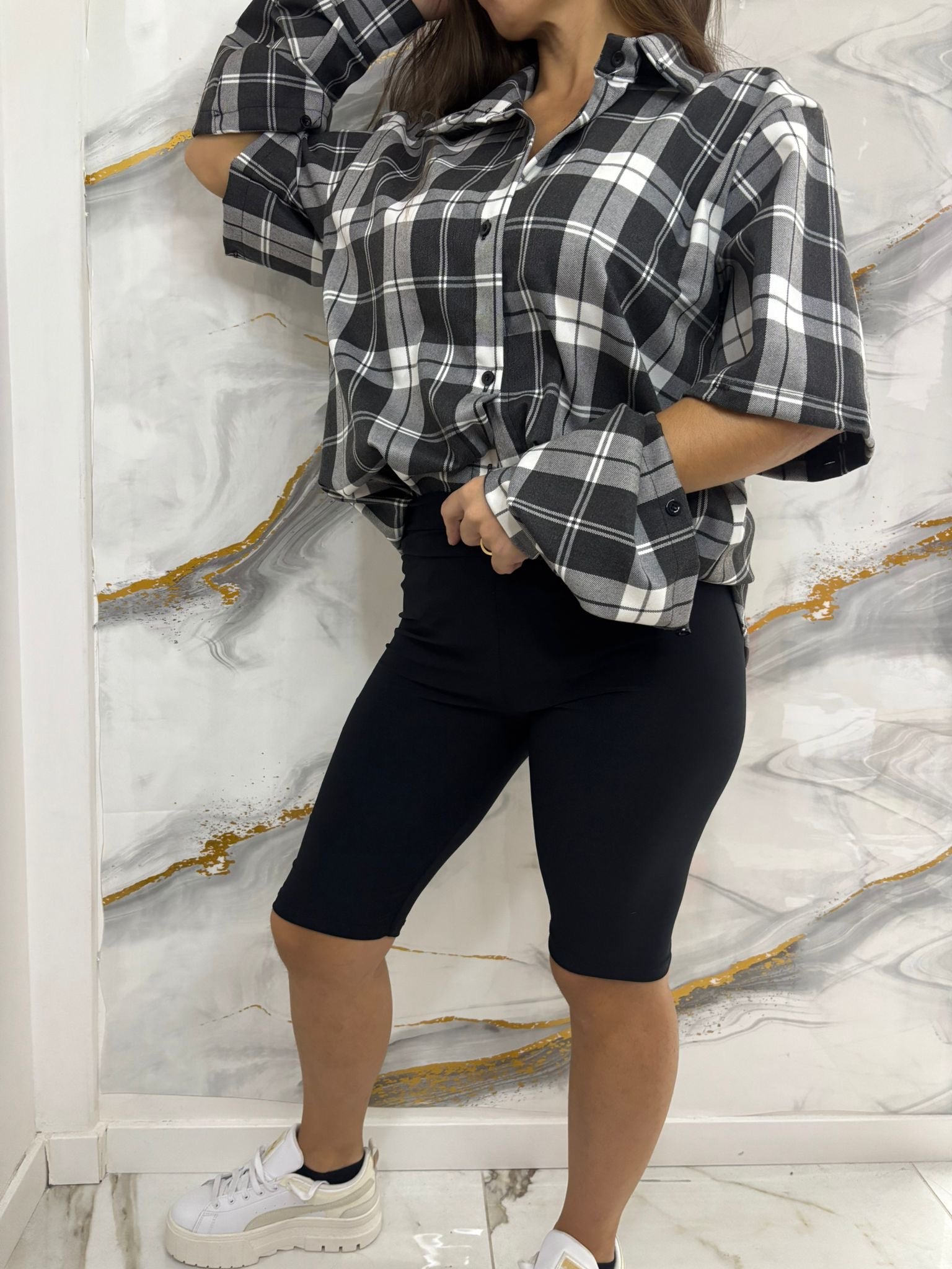 camicia lunga a quadroni con maniche removibili
