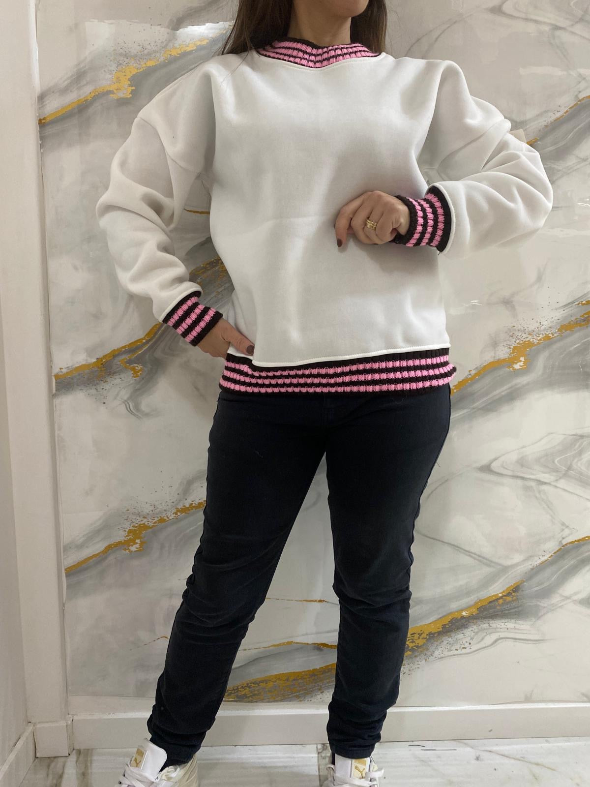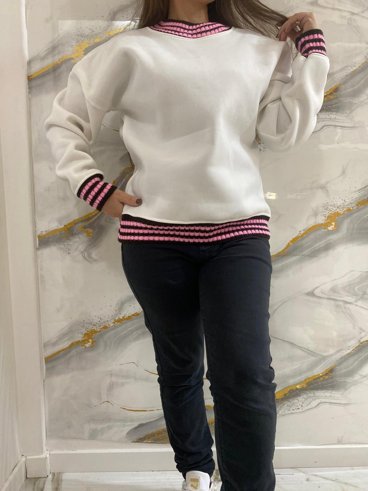 felpa con girocollo e polsini a righe