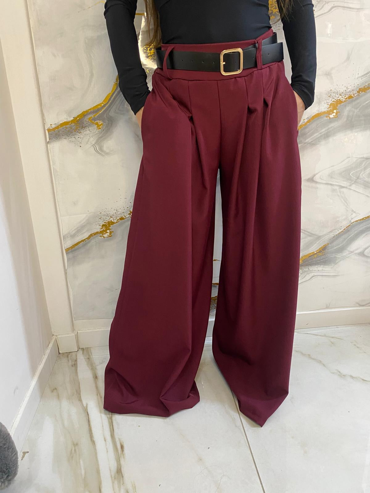 pantalone a palazzo, con elastico in vita e cintura